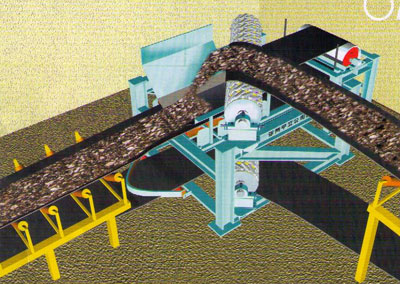ZX型帶式輸送機轉(zhuǎn)向裝置源自中國礦大,經(jīng)過多年的廣泛應用,該項技術(shù)已處于成熟應用階段。轉(zhuǎn)向裝置的應用范圍很廣,尤其適合煤礦進下彎曲的運輸巷道中,可以使帶式輸送機實現(xiàn)水平轉(zhuǎn)彎、上下轉(zhuǎn)彎、組合轉(zhuǎn)彎、上下變坡運行(在上下變坡運行中可以實現(xiàn)壓帶功能,防止產(chǎn)生飄帶)。實現(xiàn)同樣的功能,原需要多臺皮帶機搭接方式進行輸送,現(xiàn)采用該裝置一機便可達到換向轉(zhuǎn)向目的,可實現(xiàn)減少設(shè)備投資、節(jié)省能源、減少安裝工作量,減少電控操作等。