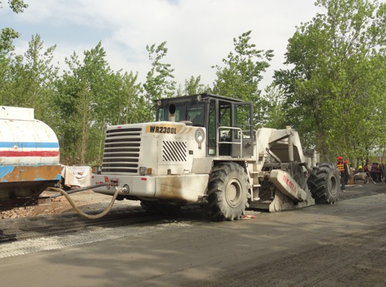 2012年3月,我公司生產(chǎn)的一臺(tái)600馬力WR2300L路面冷再生機(jī)在河南省長葛市S325省道進(jìn)行路面冷再生施工,該路段為省道,面層為6-7公分的瀝青混凝土,穩(wěn)定層為水泥碎石穩(wěn)定層。業(yè)主對(duì)該路段的大修要求是用銑刨機(jī)將瀝青面層銑刨清運(yùn),然后用冷再生機(jī)對(duì)下面的水泥穩(wěn)定土基層進(jìn)行就地冷再生施工。在精心組織施工下,一臺(tái)我公司生產(chǎn)的WR2300L路面冷再生施工質(zhì)量穩(wěn)定,深獲業(yè)主好評(píng),綜合評(píng)價(jià)勝過另一標(biāo)段的國外同類機(jī)型,在施工后期,業(yè)主只留一臺(tái)我公司的WR2300L冷再生機(jī)施工作業(yè),并承諾在以后的工程中繼續(xù)使用我公司生產(chǎn)的WR2300L路面冷生機(jī)。在實(shí)際的路面冷再生施工中獲得國內(nèi)公路施工單位的如此贊譽(yù),使我公司廣大員工深受鼓舞,這是我公司多年勤奮努力的結(jié)果,追趕國外先進(jìn)公司路面冷再生機(jī)的性能,這是我公司多年的目標(biāo),現(xiàn)在這一目標(biāo)已部分實(shí)現(xiàn),國外先進(jìn)機(jī)器的性能并不是國內(nèi)生產(chǎn)企業(yè)做不到的,目前我公司生產(chǎn)的600馬力冷再生機(jī),在機(jī)器的綜合施工效率、噴水計(jì)量精度、銑刨鼓的耐磨性上均已處于國內(nèi)領(lǐng)先水平。我們深信辛勤的努力可以獲得進(jìn)步的回報(bào),我們也將繼續(xù)努力,開發(fā)更先進(jìn)的機(jī)型,努力回報(bào)用戶,回報(bào)社會(huì)。