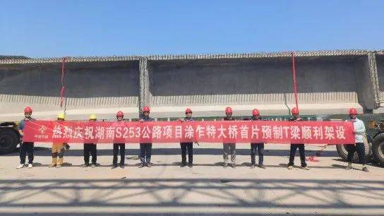 近日,湖南S253公路項目涂乍特大橋首片預制T梁成功架設,標志著項目預制梁架設工作已全面開展,推動項目施工進度沖上新臺階。